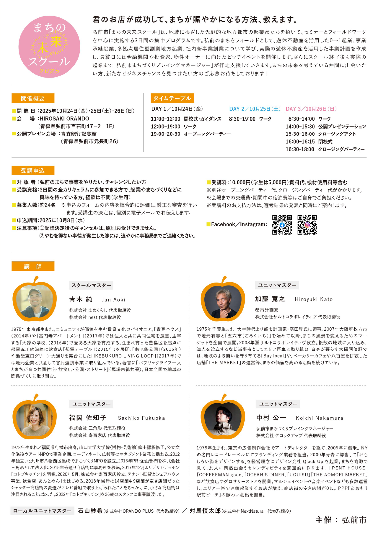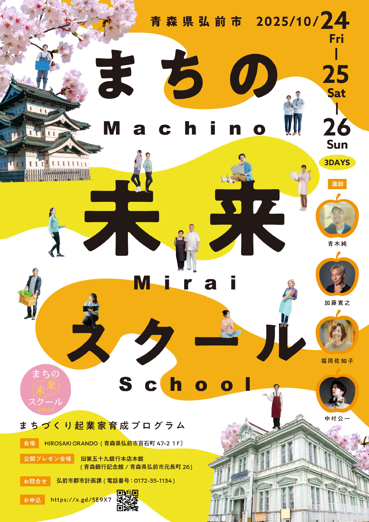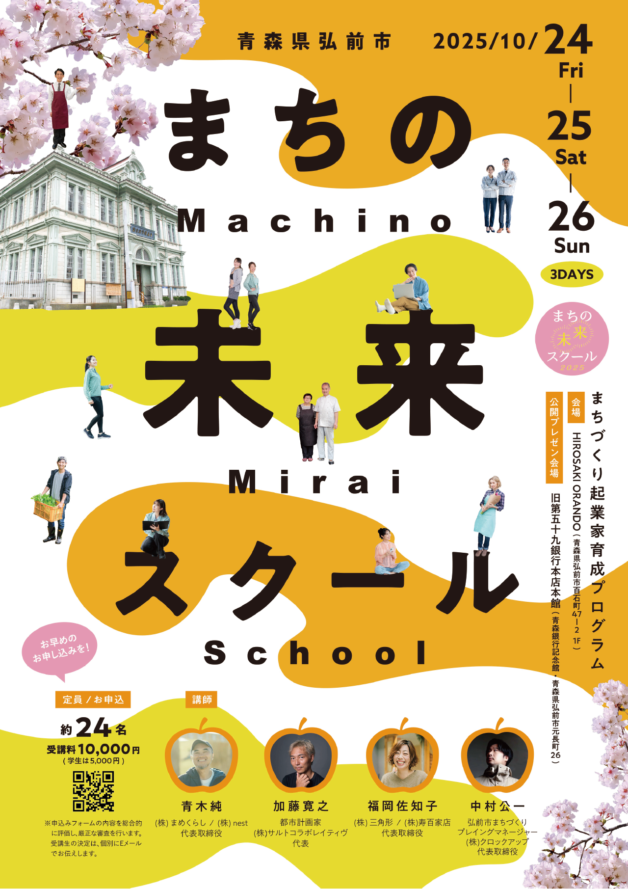 青森県弘前市のまちづくり企業家育成プログラム「まちの未来スクール」様の、チラシ・ポスターの制作を担当いたしました。