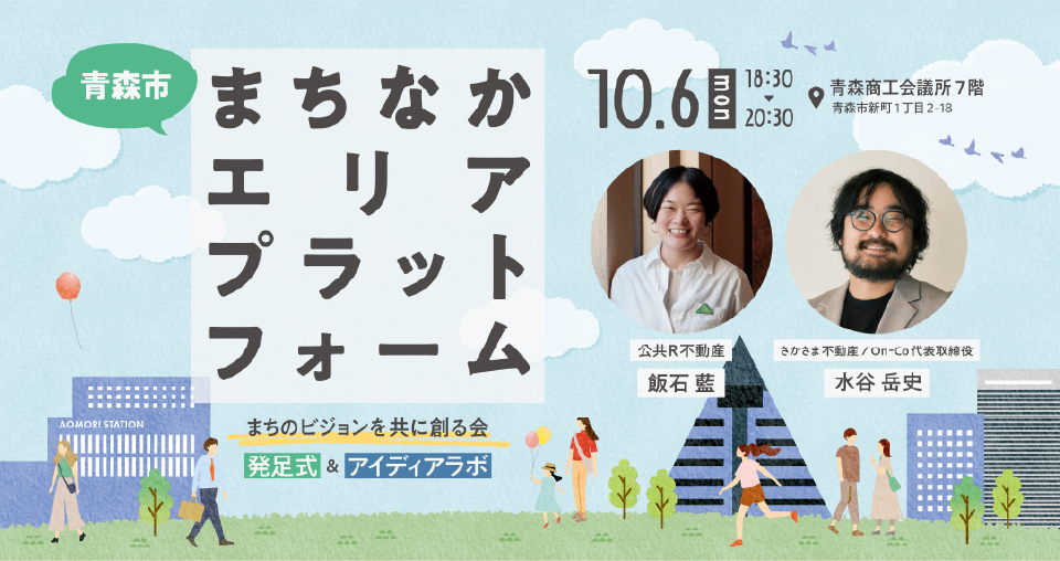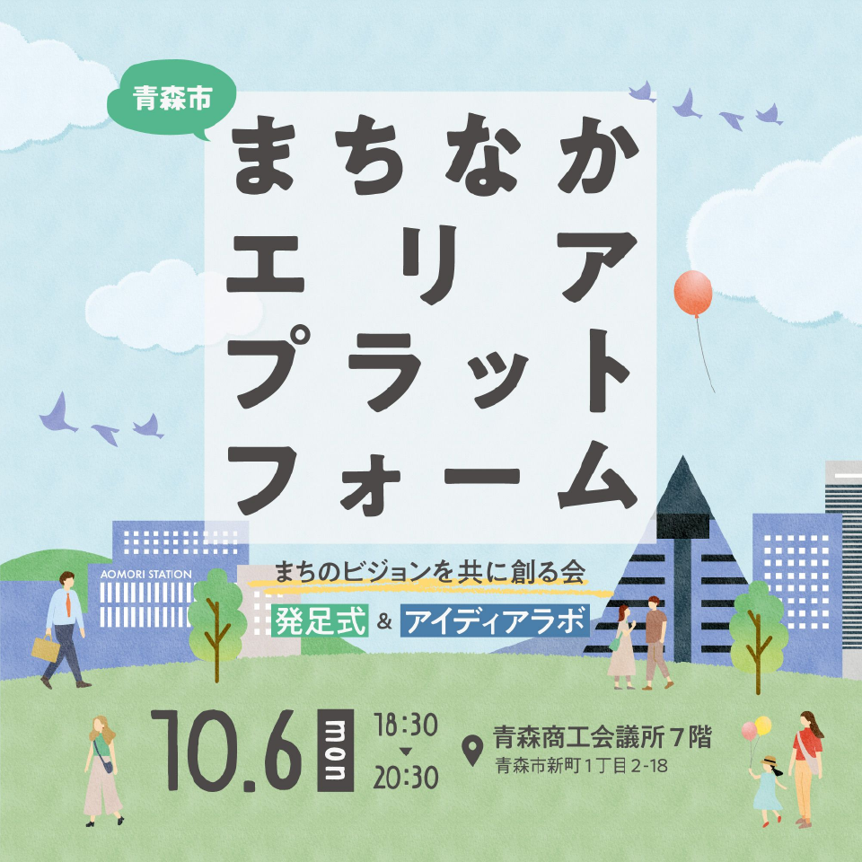 まちに住む人が中心となる『青森まちなかエリアプラットフォーム』を、もっと身近に感じてもらえるよう、楽しげな雰囲気でデザインしました。背景には市民の皆さんに馴染みのあるアスパムや青森駅が散りばめられています。もし自分だったらこのまちでどんなことがしたいか、考えるきっかけになれば嬉しいです。