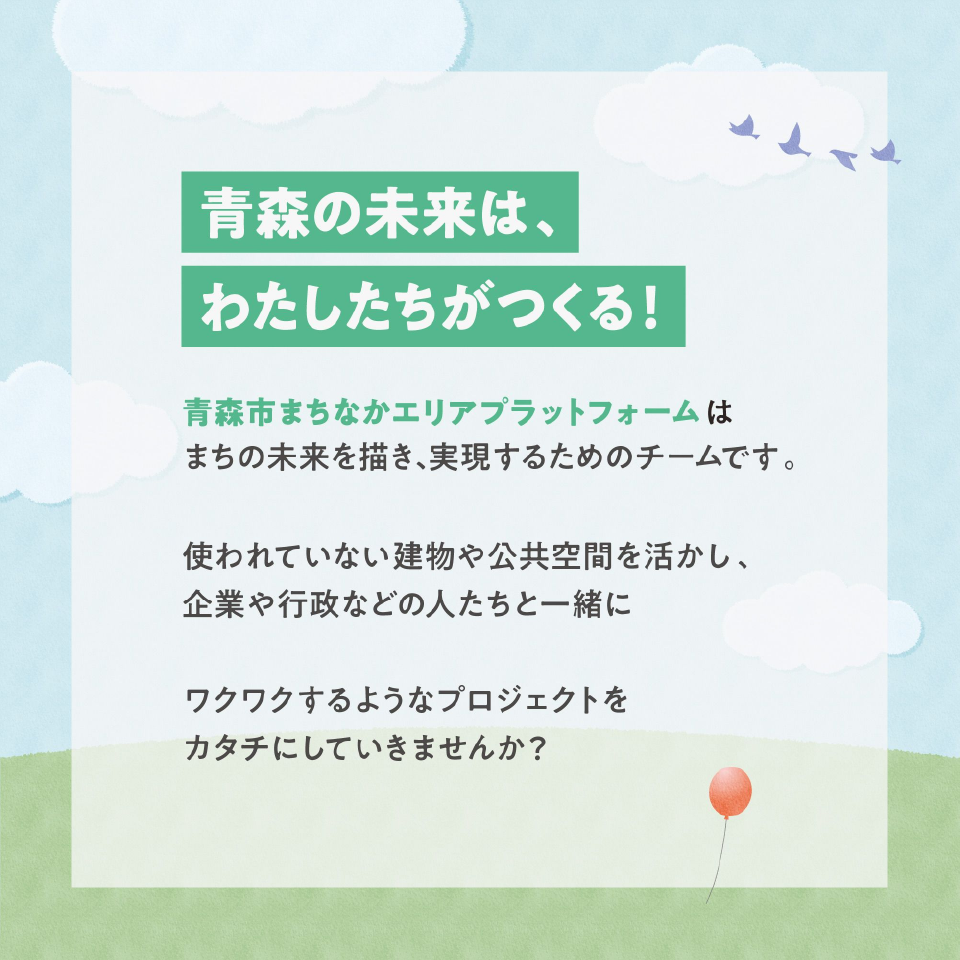 青森市の青森市の まちの未来を描き、実現するためのチーム『青森まちなかエリアプラットフォーム』のSNSの投稿素材のデザインを行いました。